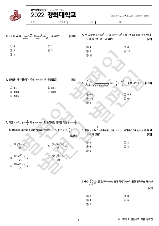 2022학년도 경희대 편입수학 기출문제 학습하기