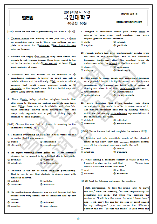 2019학년도 국민대 편입영어 기출문제
