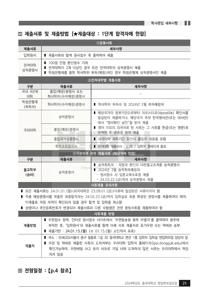 2024학년도 동국대 편입 모집 요강을 확인하여, 지원 시에 참고하시기 바랍니다.